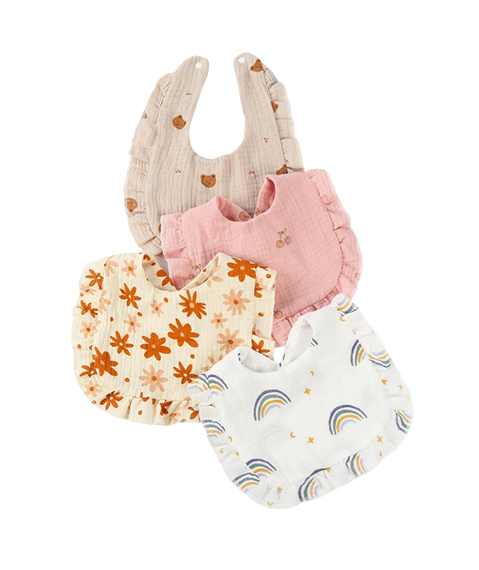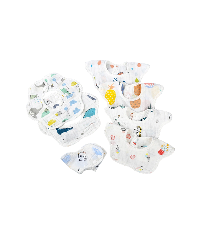 Los baberos son un elemento indispensable en el cuidado diario del bebé, evitando eficazmente que la comida y la baba mojen la ropa y manteniendo el pecho del bebé seco. La mayoría de los baberos están hechos de algodón puro suave y respetuoso con la piel o de materiales impermeables, lo que los hace cómodos y fáciles de limpiar, adecuados para la alimentación diaria, para llevarlos a cabo o para usar durante la etapa de babeo. El diseño que se ajusta perfectamente alrededor del cuello del bebé no solo los hace fáciles de usar sino que también reduce la incomodidad por fricción. Una variedad de patrones y colores también pueden agregar diversión a la vestimenta, haciendo que el bebé sea aún más lindo y al mismo tiempo se mantenga limpio y cómodo.