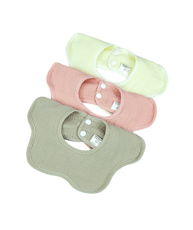 La tela de crepé es una tela de algodón fina y de tejido liso con arrugas longitudinales espaciadas uniformemente en su superficie. La tela se arruga naturalmente, lo que la hace liviana, suave y tersa al tacto. También tiene buena elasticidad en la dirección de la trama y es fácil de teñir. Los baberos de crepé para bebés están hechos de hilo de alta cantidad (40 unidades o más), lo que los hace livianos, transpirables, suaves y amigables con la piel, adecuados para la delicada piel de los bebés. Ya sean blanqueados, de color sólido, estampados o teñidos con hilo, combinan practicidad y estética. Cuando los bebés comen, babean o salen, los baberos de crepé no solo absorben agua rápidamente y se ajustan cómodamente, sino que también agregan una textura natural y un toque moderno al cuidado diario, lo que los convierte en una opción ideal para proteger las necesidades diarias de su bebé.
