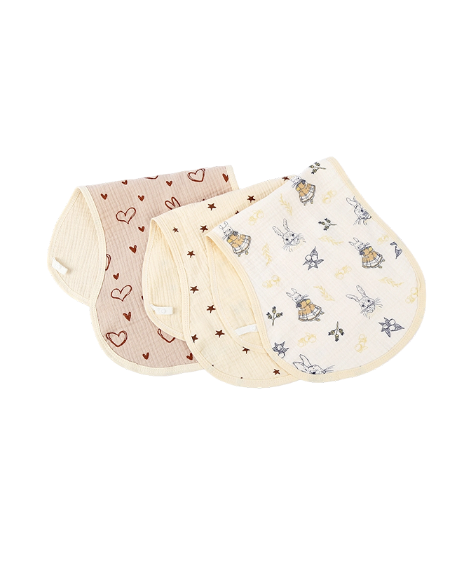 Las mantas para eructar para bebés son una ayuda reflexiva para los nuevos padres. Al hacer eructar a un bebé propenso a escupir, los padres pueden colocar la manta para eructar sobre su hombro; su textura suave y agradable para la piel y su alta capacidad de absorción evitan eficazmente que las regurgitaciones ensucien la ropa. A medida que el bebé crece y comienza a comer alimentos sólidos, la manta para eructar también se puede usar como un babero grande, absorbiendo rápidamente la saliva, los regurgitaciones y los residuos de comida para mantener al bebé limpio y seco. Su diseño multifuncional lo hace versátil, práctico y conveniente, aportando más facilidad y tranquilidad al cuidado diario.