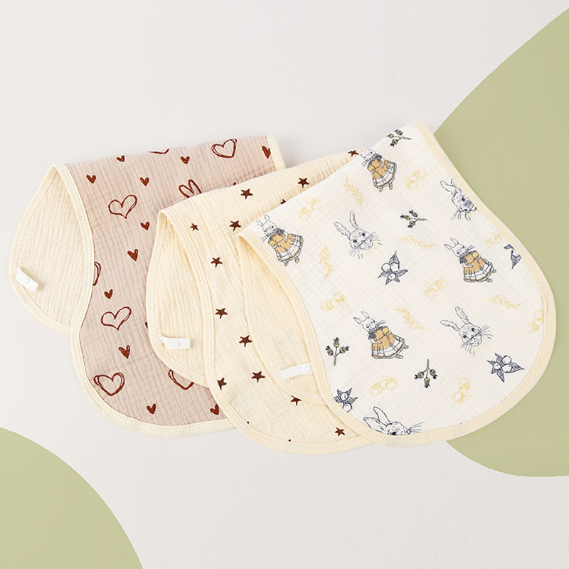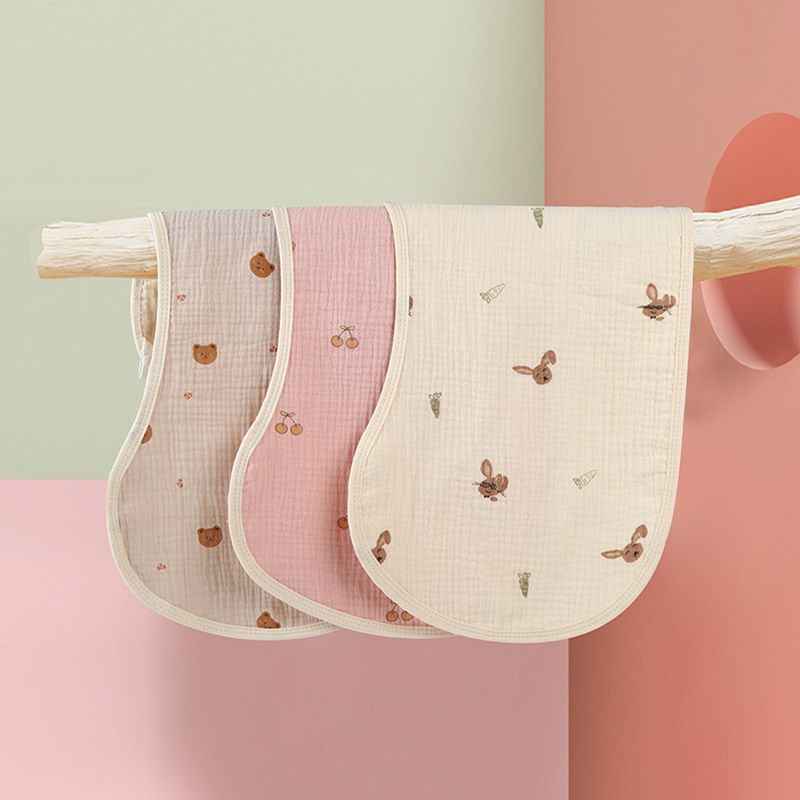 Las mantas para eructar estampadas a crochet presentan estampados de dibujos animados originales sobre una base de tela de crochet suave, que ofrecen colores brillantes y diversión para agregar disfrute a las comidas y cuidados de su bebé. Gruesos y absorbentes, protegen eficazmente la ropa de regurgitaciones o baba y son fáciles de limpiar. La tela naturalmente arrugada mejora su suavidad y proporciona un ajuste cómodo alrededor de los hombros, lo que hace que sea fácil de manipular para los padres. Combinando practicidad y estética, estas mantas para eructar estampadas a crochet son una opción versátil para el cuidado diario, los viajes y las oportunidades para tomar fotografías, lo que hace que cada sesión de eructo sea suave y divertida.