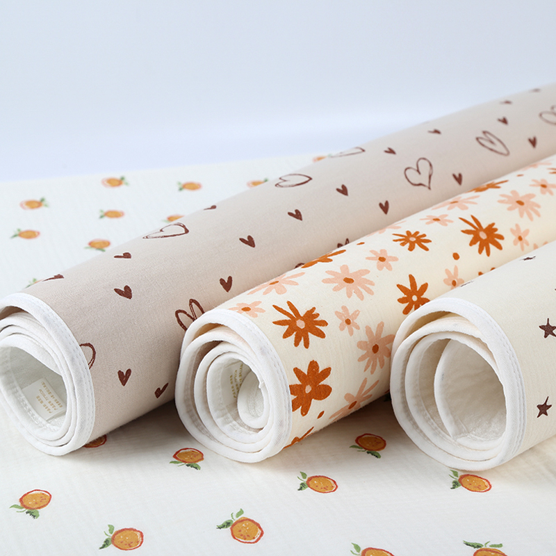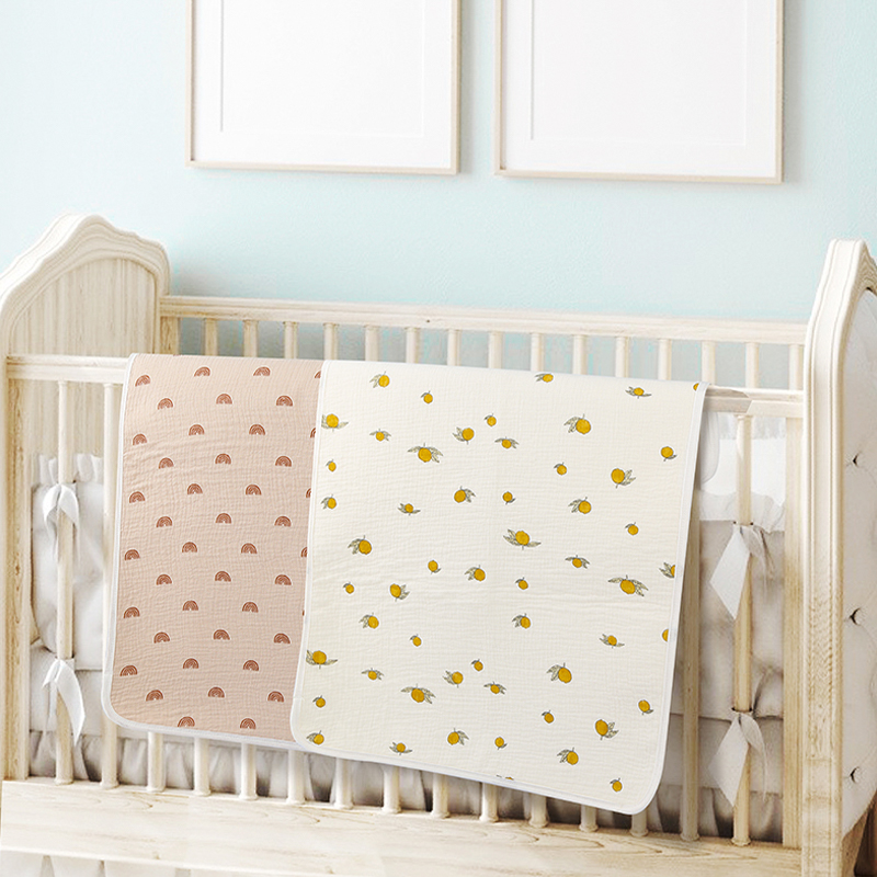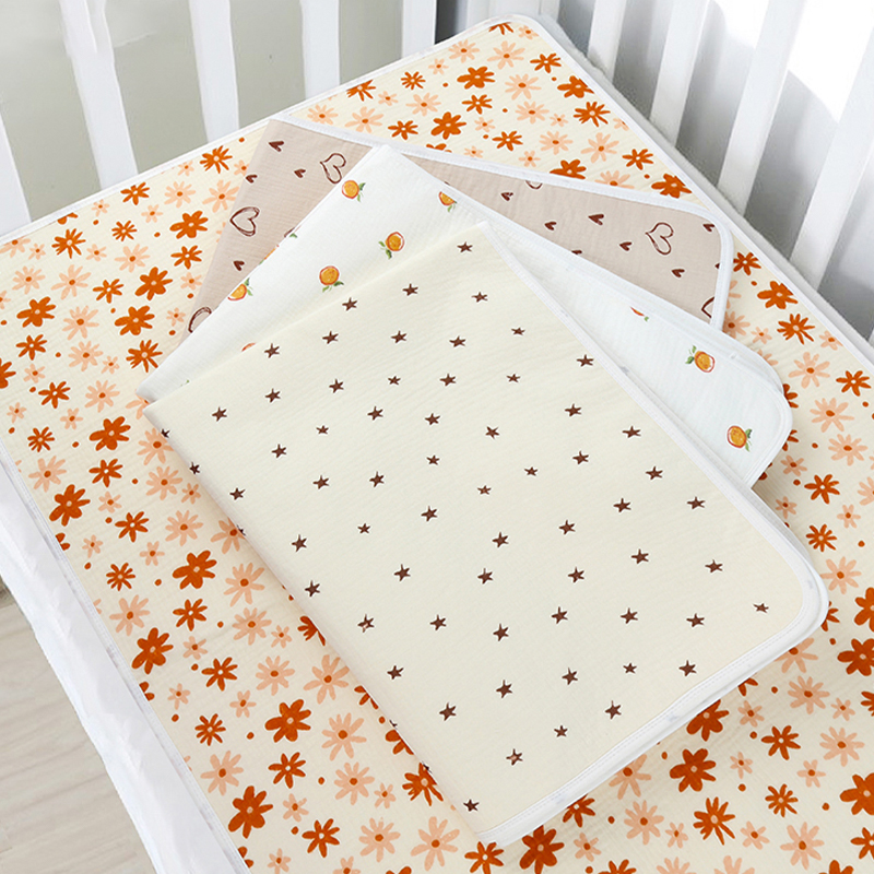 La almohadilla impermeable impresa de doble capa presenta un diseño coreano moderno. La capa exterior está hecha de gasa suave de doble capa, que ofrece una sensación agradable para la piel y transpirable; la capa interior está hecha de algodón lavado para mayor comodidad y suavidad; la capa intermedia de TPU es impermeable, previniendo eficazmente la penetración de orina y manteniendo al bebé seco toda la noche; la capa inferior de felpa de fibra de bambú agrega un efecto antideslizante, lo que garantiza un uso seguro y estable. La almohadilla es reversible y el diseño de gran tamaño es adecuado no solo para bebés y niños pequeños, sino también como almohadilla menstrual o almohadilla para la incontinencia de adultos, satisfaciendo diversas necesidades. Impermeable, transpirable y con un estampado elegante que realza su atractivo estético, esta almohadilla práctica y elegante es una opción ideal para el hogar, los viajes y el cuidado personal, permitiendo que tanto bebés como adultos disfruten de una experiencia de sueño segura y cómoda.