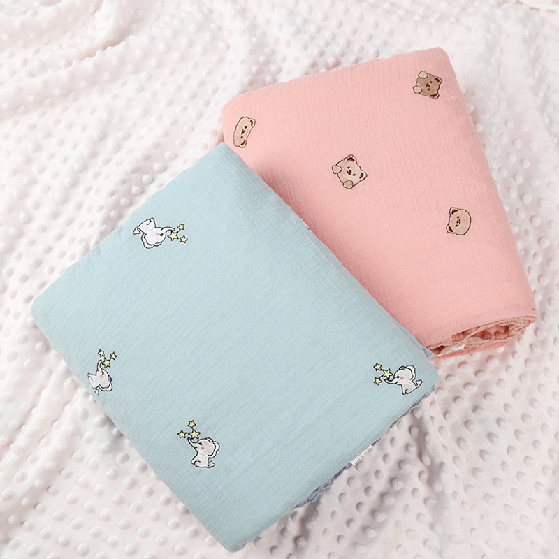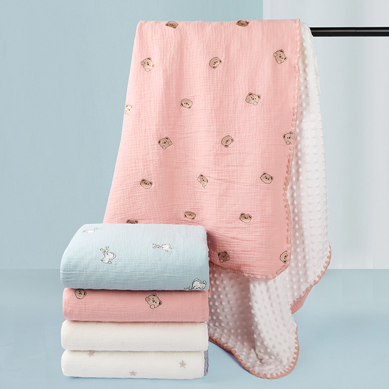 La manta de vellón bordada en crepé presenta una tela de algodón crepé de grado A suave y agradable para la piel en el frente, complementada con una cómoda base de vellón que brinda calidez y un suave efecto de masaje, calmando a su bebé y ayudándolo a disfrutar de dulces sueños. El exquisito bordado de dibujos animados añade un toque de ternura y diversión. Disponible en tres tamaños para adaptarse a diferentes necesidades, es lo suficientemente versátil para dormitorios, salas de estar o viajes. La parte inferior de vellón transpirable y cálida garantiza que su bebé se mantenga abrigado incluso en habitaciones con aire acondicionado, lo que proporciona un ambiente para dormir cómodo y seguro. Esta manta polar bordada en crepé combina practicidad y estética, lo que la convierte en una opción perfecta para nutrir el crecimiento y el descanso de su bebé.