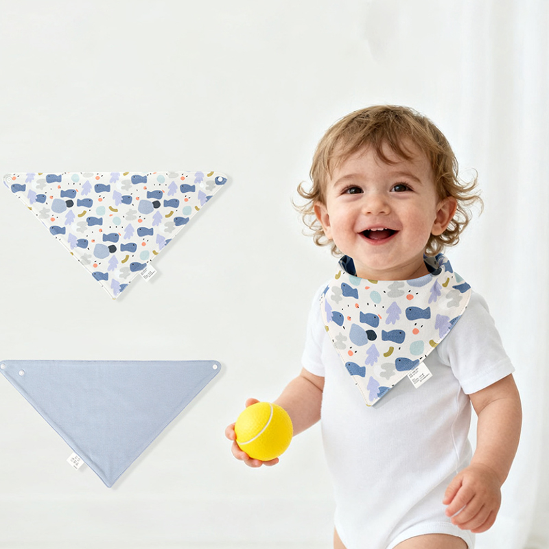 Diseñado específicamente para la dentición y el destete de los bebés, este babero cumple con los estándares de seguridad de Clase A para productos para madres y bebés. Está libre de agentes fluorescentes y olores, lo que lo hace seguro para que los bebés lo mastiquen. El tejido de punto de doble cara es suave y agradable al tacto, transpirable y absorbe la humedad. El diseño reversible permite un estilo versátil con diferentes conjuntos. El clásico corte triangular se ajusta cómodamente alrededor del cuello y el cierre a presión ajustable se adapta a diferentes tamaños de cuello, evitando rozaduras y desplazamientos. Absorbe rápidamente las manchas de saliva y leche, lo que lo hace práctico para la hora de comer y jugar: un artículo verdaderamente versátil y esencial.