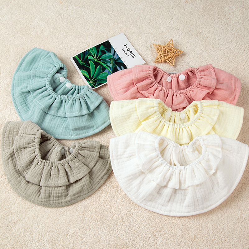Confeccionado con tela crepé de primera calidad, este babero es suave, delicado, liviano, transpirable y agradable para la piel, protegiendo la delicada piel de su bebé. El exclusivo diseño de volantes añade un estilo de princesa de ensueño, especialmente adecuado para niñas. Los pliegues naturales crean una apariencia rica en capas, lo que lo hace dulce y adorable, mejorando fácilmente la apariencia de su bebé. El babero es muy absorbente y absorbe eficazmente las manchas de baba y leche, manteniendo la ropa seca y limpia. El ajuste ceñido alrededor del cuello permite libertad de movimiento sin restricciones, y los botones a presión facilitan ponérselo y quitárselo. Durable y resistente, permanece suave incluso después de múltiples lavados, lo que lo convierte en una opción práctica para los bebés que babean.