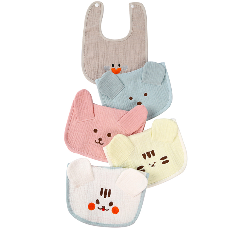 Confeccionado con un tejido crepé transpirable y agradable para la piel, este babero es suave, liviano y delicado con la piel, lo que lo hace adecuado para la delicada piel de los bebés. El exquisito bordado combinado con diseños de dibujos animados añade un toque de diversión infantil. El tejido crepé de alta calidad es suave y delicado con la piel. El diseño tridimensional combinado con un corte en forma de U se adapta a la curva del cuello, cubriendo el área clave del pecho y evitando eficazmente la baba, las manchas de leche y los residuos de comida. Los pliegues naturales añaden textura y dimensión, creando una apariencia simple pero elegante para el uso diario. Los broches de seguridad facilitan ponérselo y quitárselo sin apretar el cuello, son adecuados para la lactancia materna, durante los períodos de babeo y para protección cuando está fuera de casa.